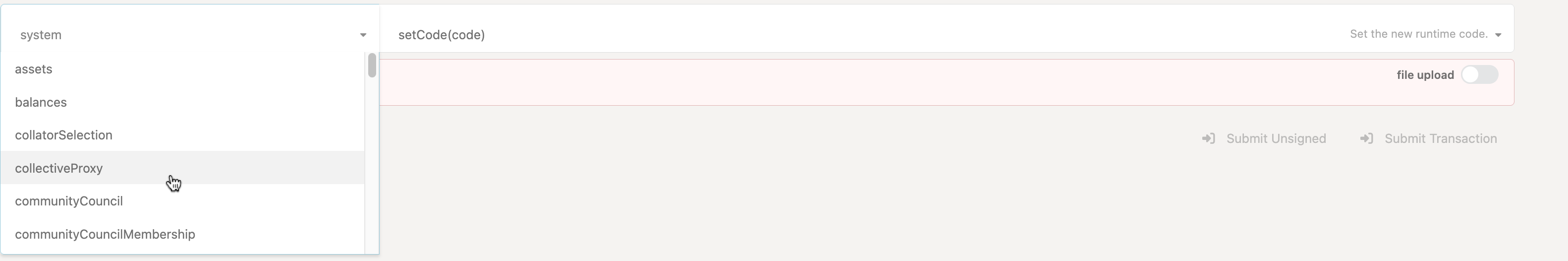 Unlike previous collectives, there’s no simple-to-use UI available in polkadot-js apps, even though the underlying logic is exactly the same.