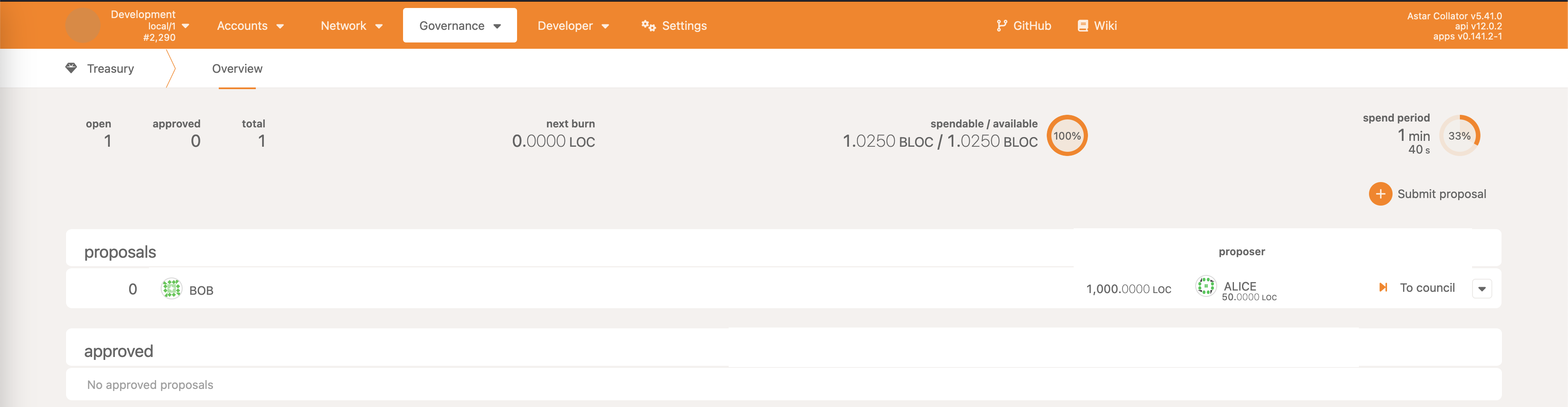 • Treasury->approveProposal - approve the treasury spending proposal