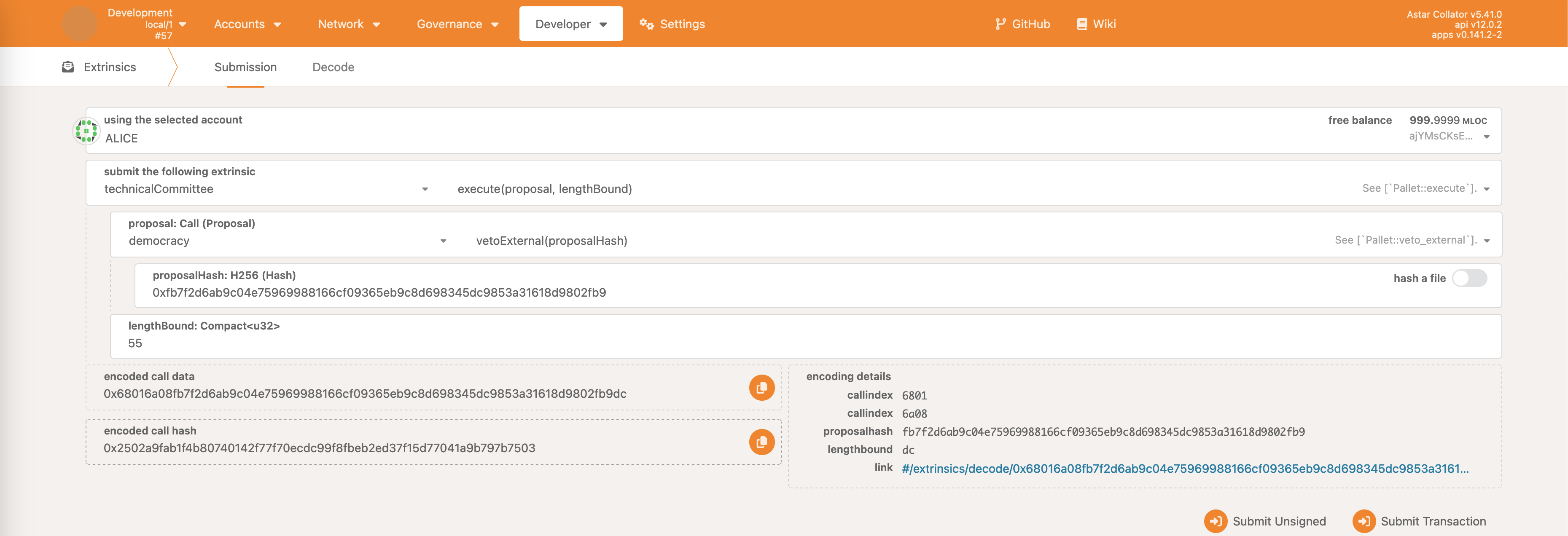 The call that should be executed is democracy pallet’s veto.