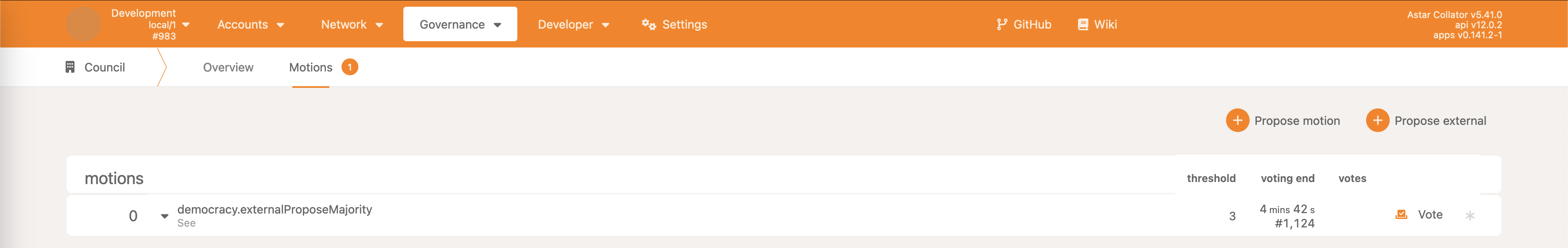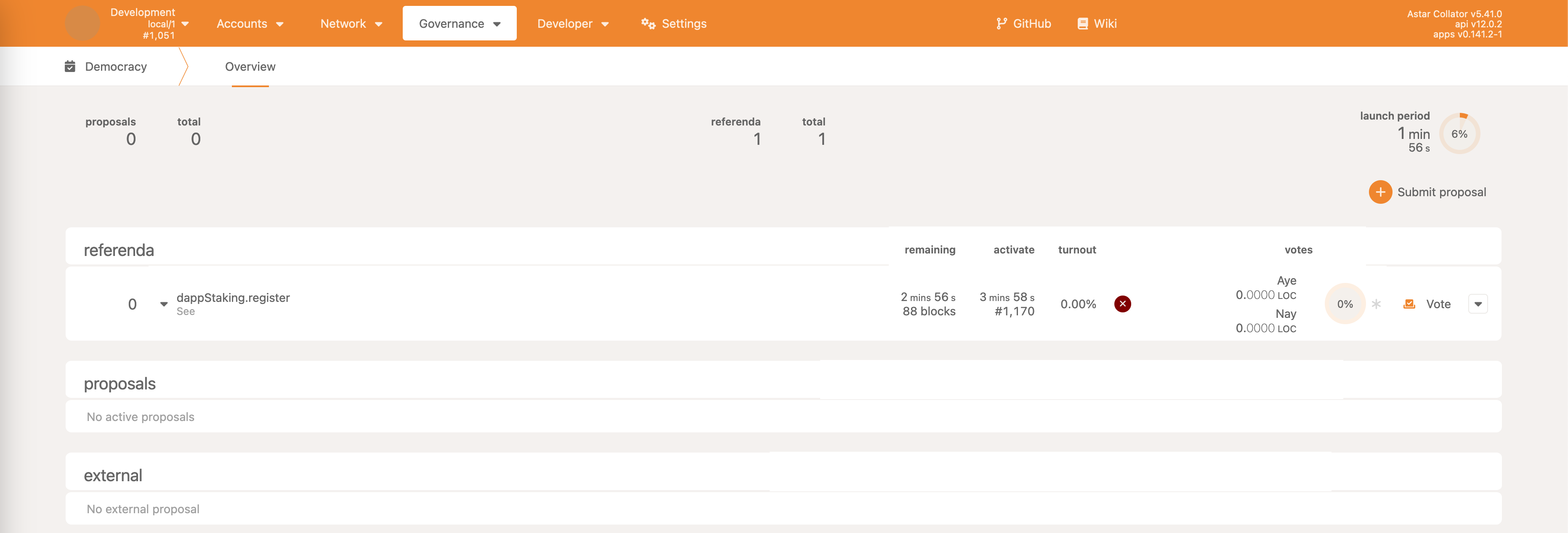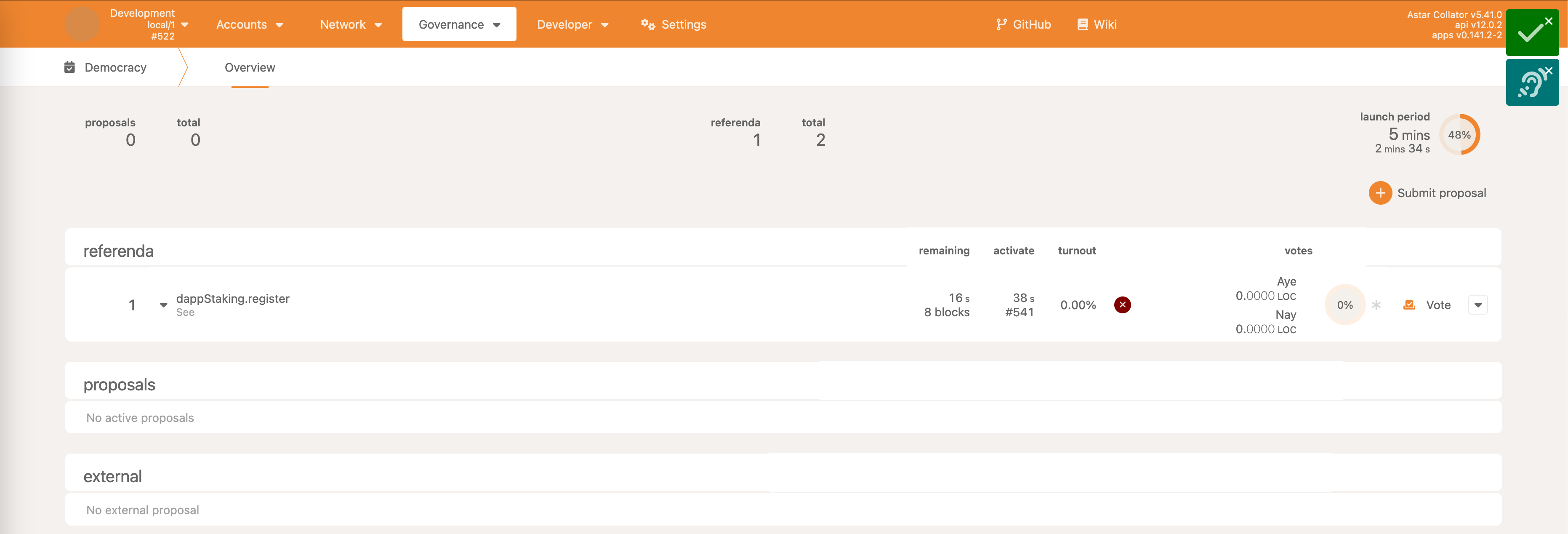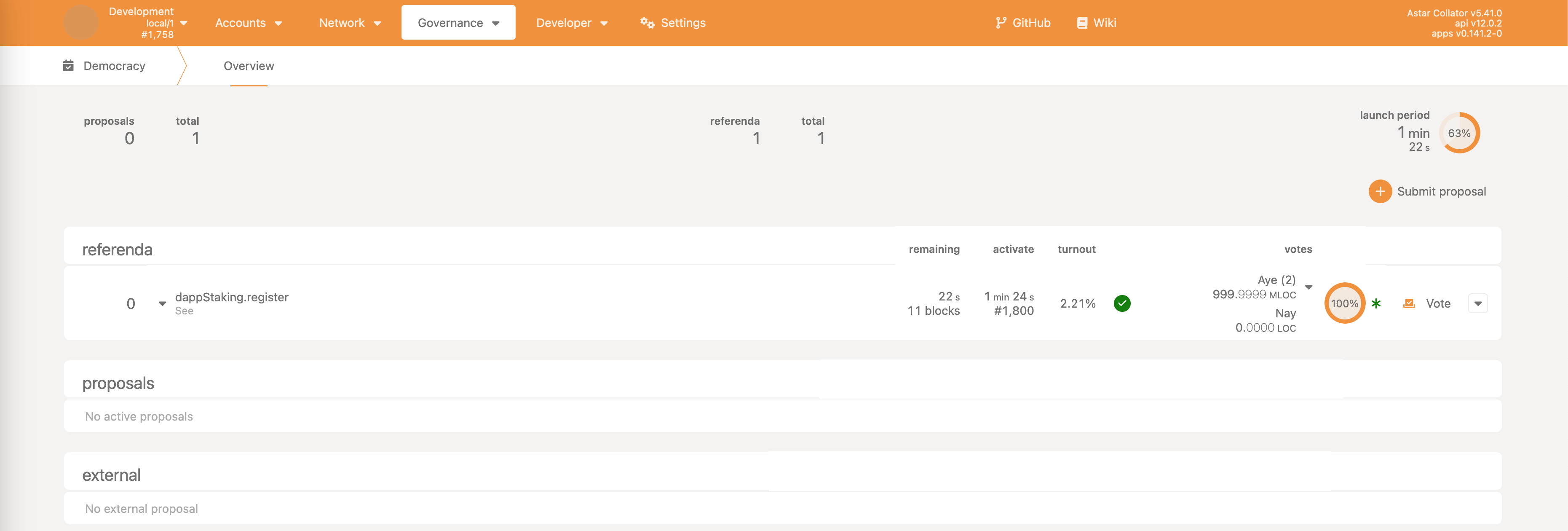 • Democracy->propose - make a proposal, reserving some ASTR as the deposit