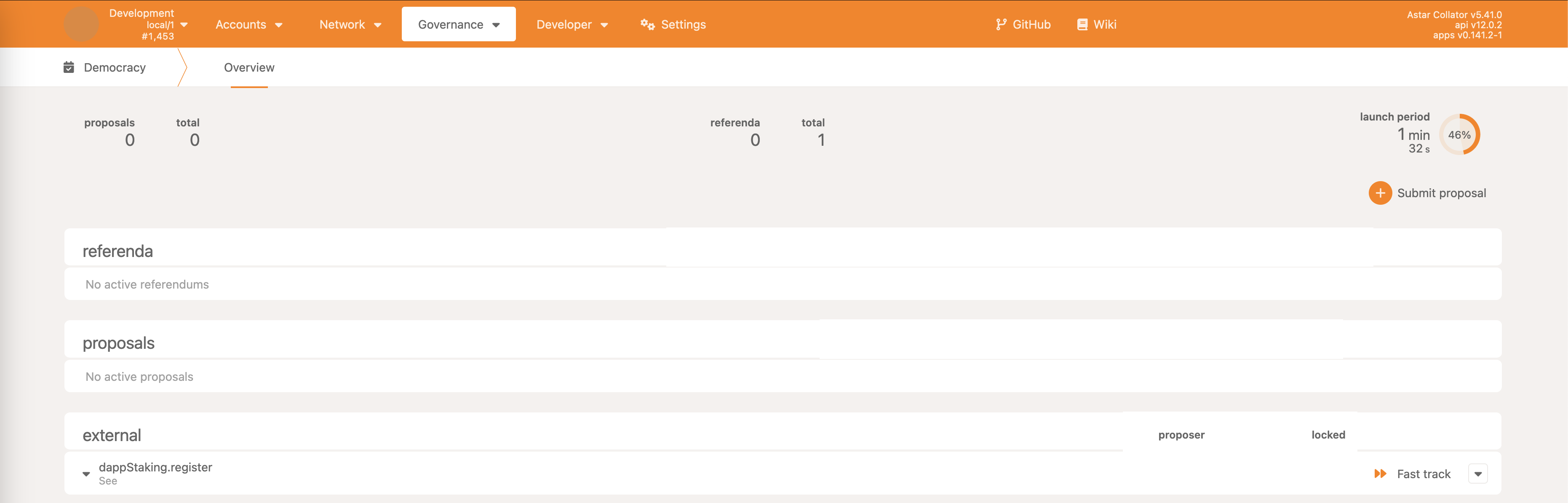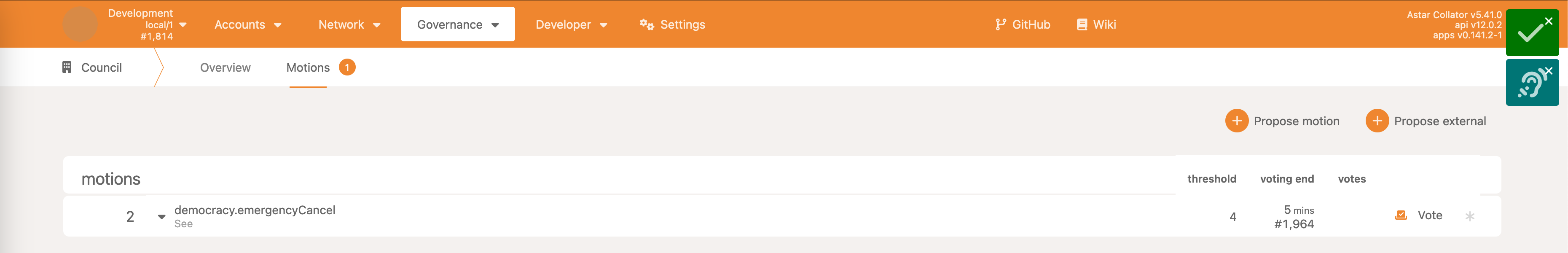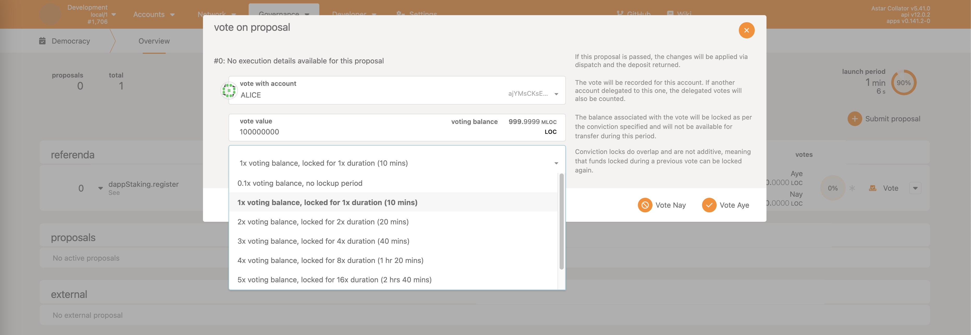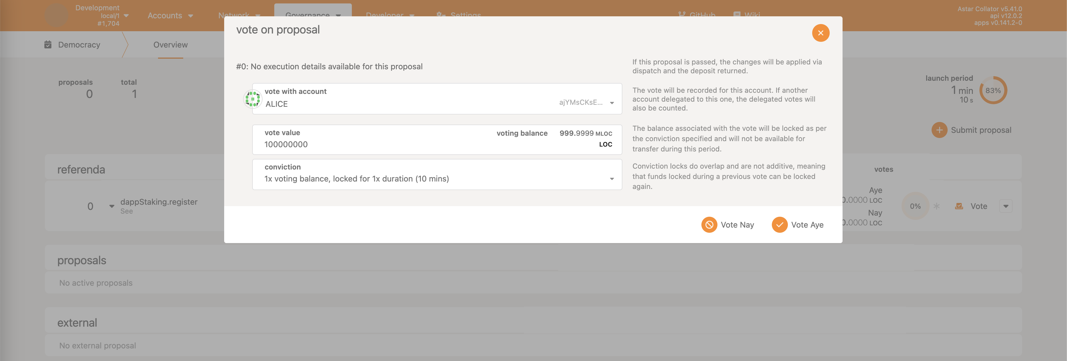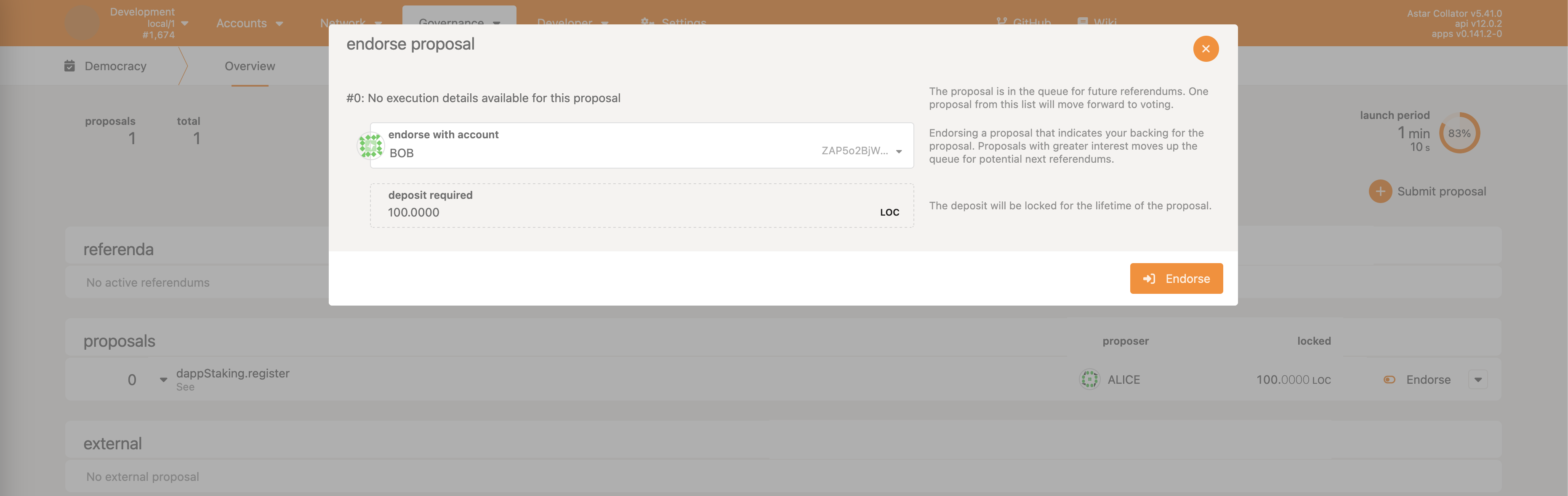 • Democracy->propose - make a proposal, reserving some ASTR as the deposit