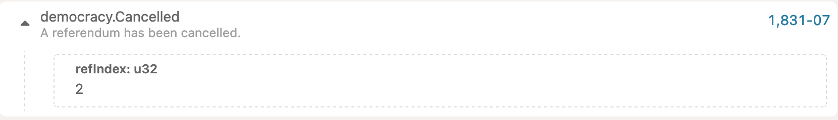 • Democracy->removeVote - removes the vote from the referendum, releasing the funds if no locks are applicable anymore