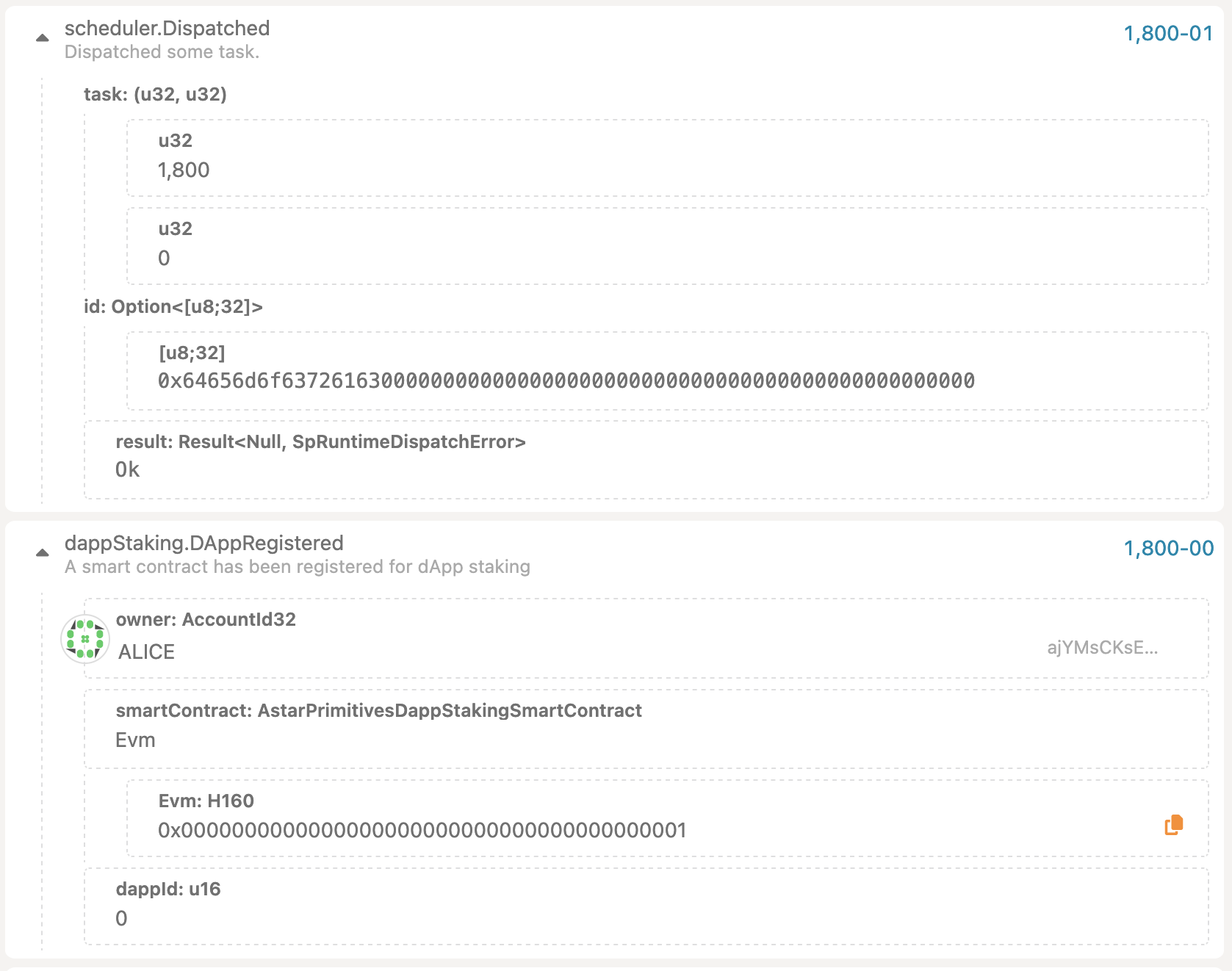 • DappStaking->register - register a new dApp into dApp staking